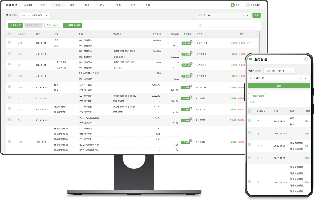 This feature captures and records various financial transactions, ensuring that each transaction balances debits and credits. Financial vouchers generate financial statements such as balance sheets, income statements, and cash flow statements, showcasing the company's financial status and performance.